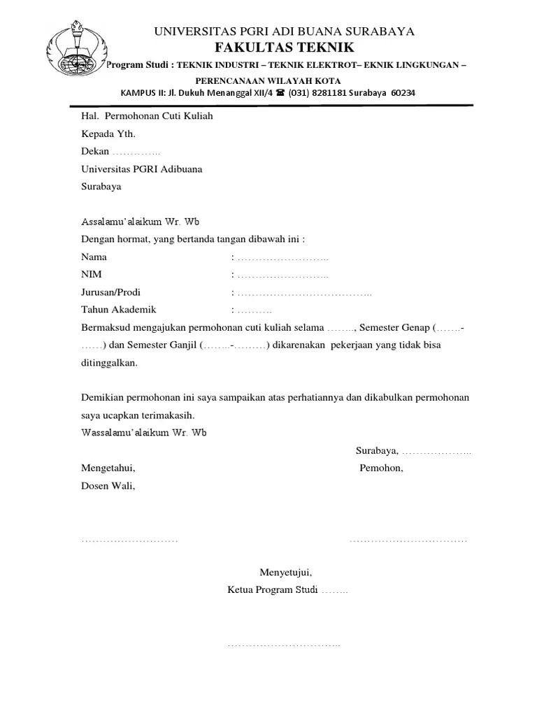 Permohonan surat cuti akademik (online). Tujuan saya memohon cuti untuk menghadiri perkahwinan kakak saya yang akan. Jika risau dengan kes di sekitar, mohon cuti saja . Bagi pegawai atau karyaawan puskesmas tegalrejo yang ingin mengajukan cuti silahkan download dulu format permohonan cuti di bawah ini. Demikian saya sampaikan surat permohonan ini, mohon kiranya agar permohonan yang saya sampaikan ini dapat dikabulkan.